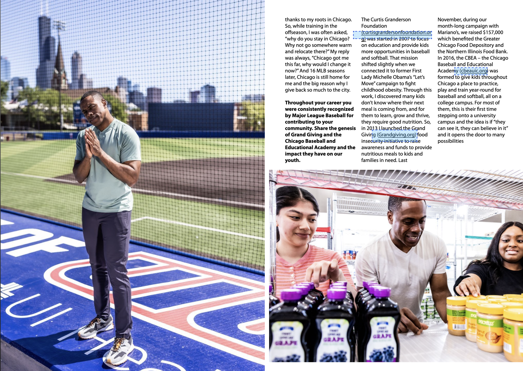 Curtis Granderson, launched the Grand Kids Foundation to connect Chicago youth to educational and athletic opportunities and resources, as well as health and wellness initiatives. Over the years, he launched additional non-profits and initiatives—including the Chicago Baseball & Educational Academy & Grand Giving—but they lacked brand continuity.