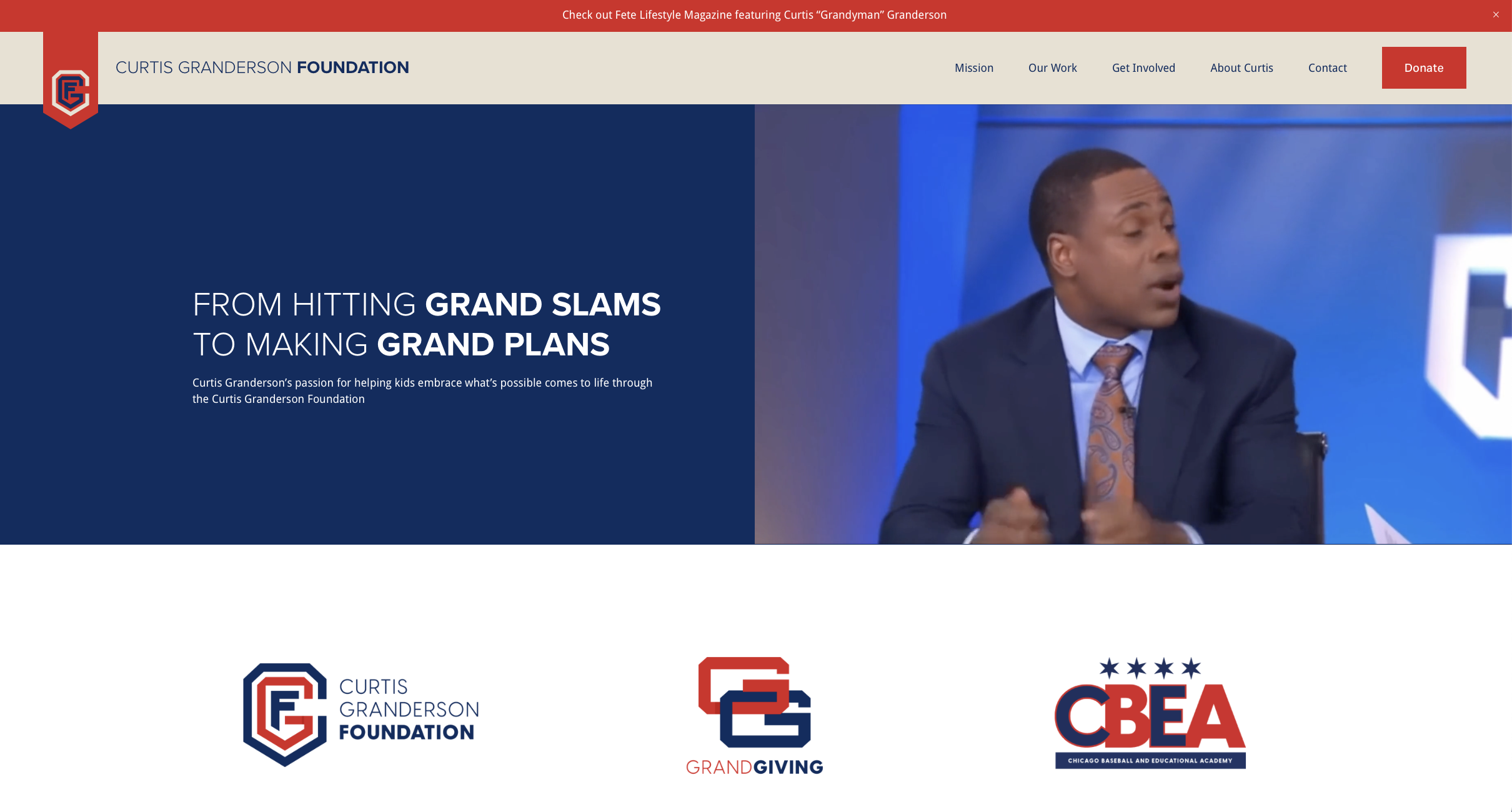 We developed a plan to align all of Granderson’s non-profits under a brand umbrella—the Curtis Granderson Foundation—and gave it a fresh look and connected brand narrative. We trademarked his nickname—The Grandyman—and launched a website by the same name.